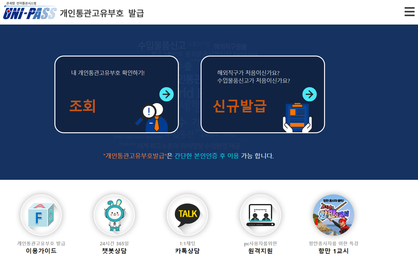마지막으로 개인통관고유부호 신청 방법을 간략하게 설명드리겠습니다.